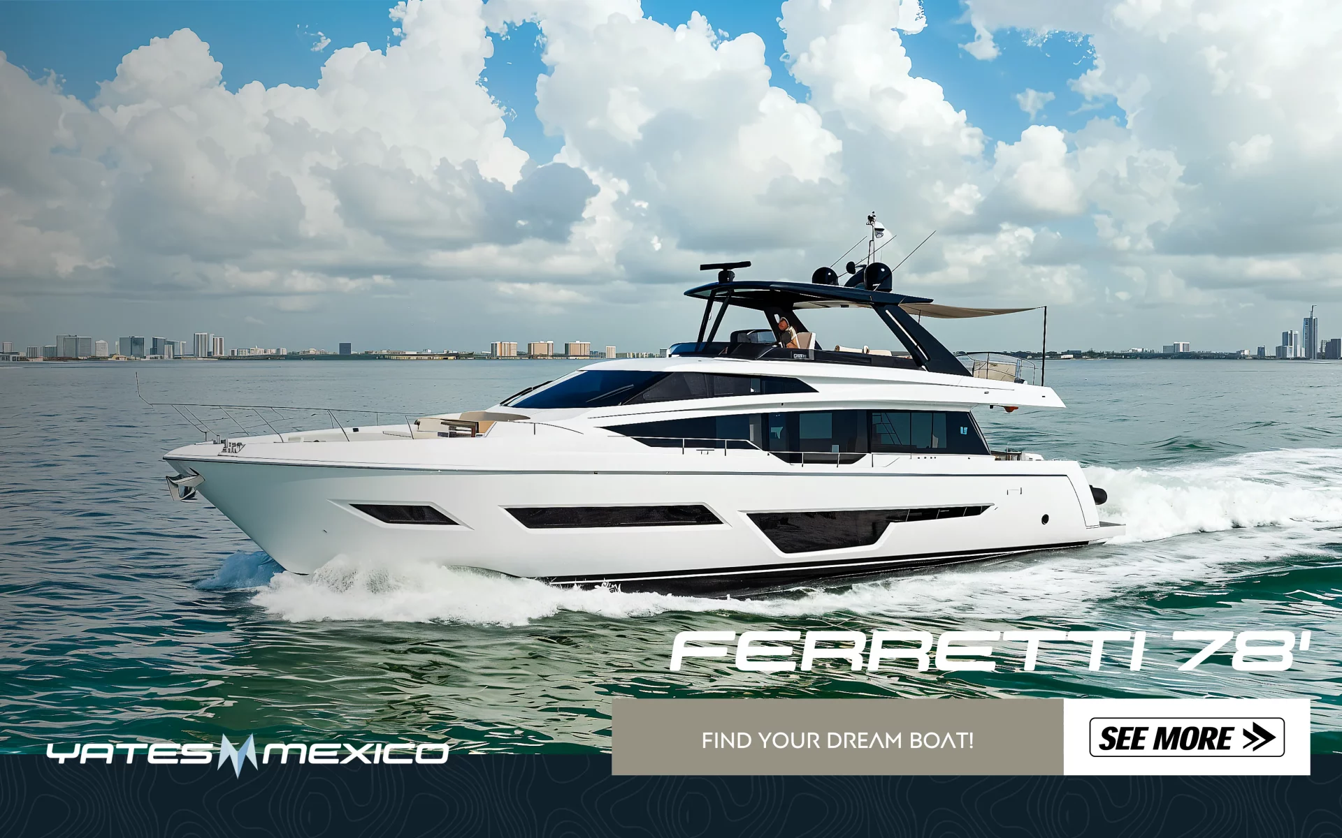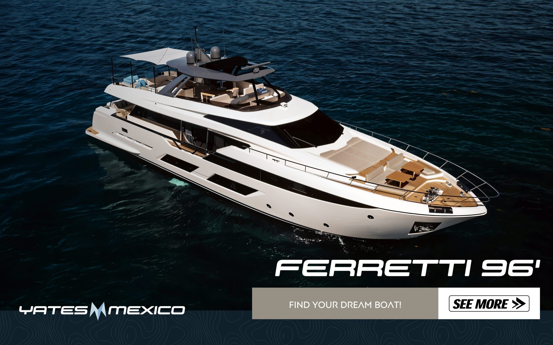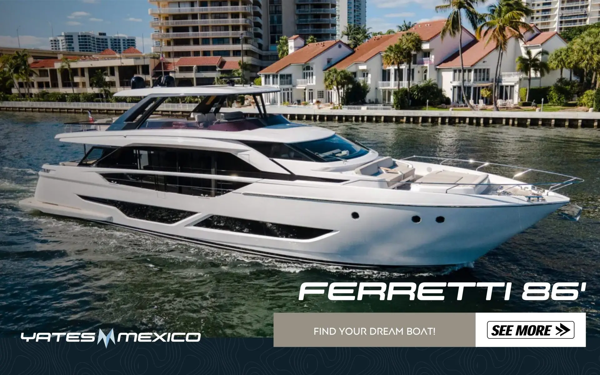 Ferretti 86’ 2023 en venta — elegancia italiana, rendimiento superior y confort inigualable. Una joya moderna del mar disponible con YatesMexico.com.