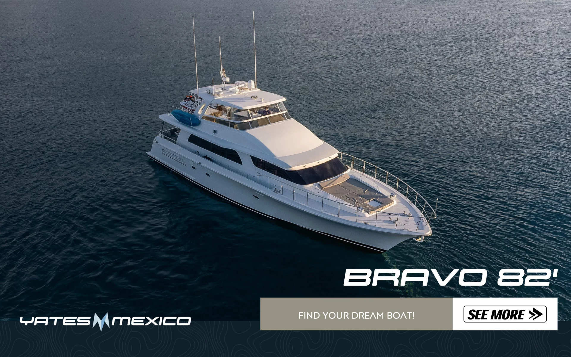 Con 5 cabinas y 5 baños, amplias áreas sociales y un flybridge equipado con espacio para motos acuáticas y tender, este yate está diseñado para largas travesías o vivir a bordo con total comodidad.