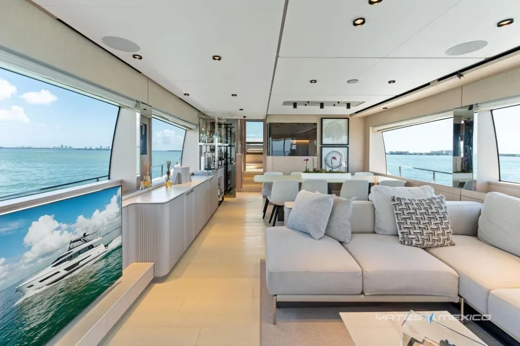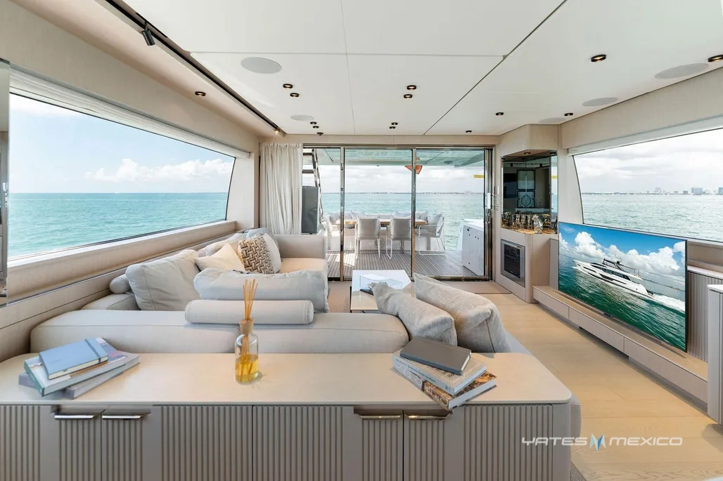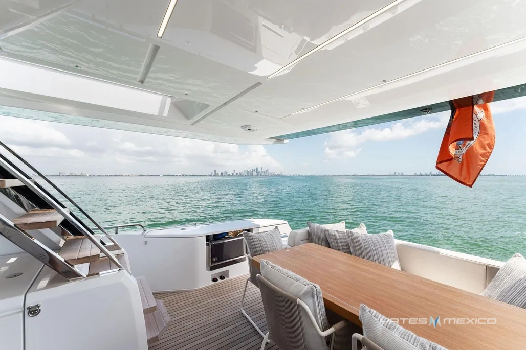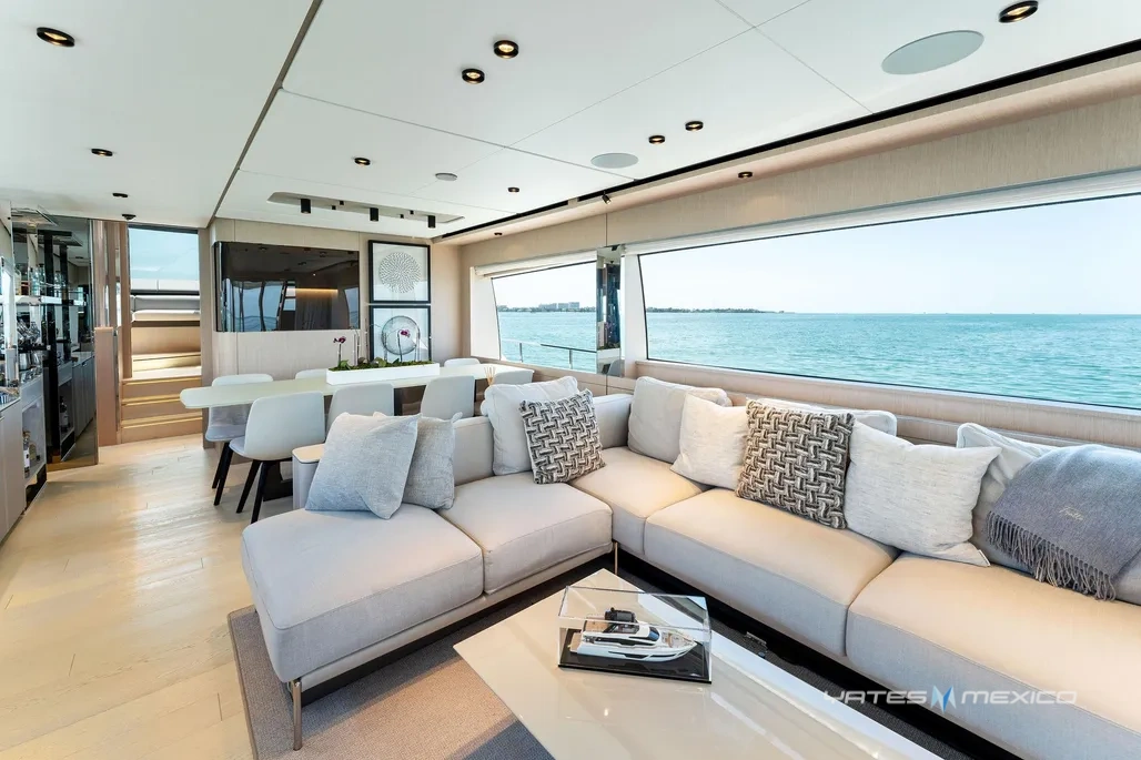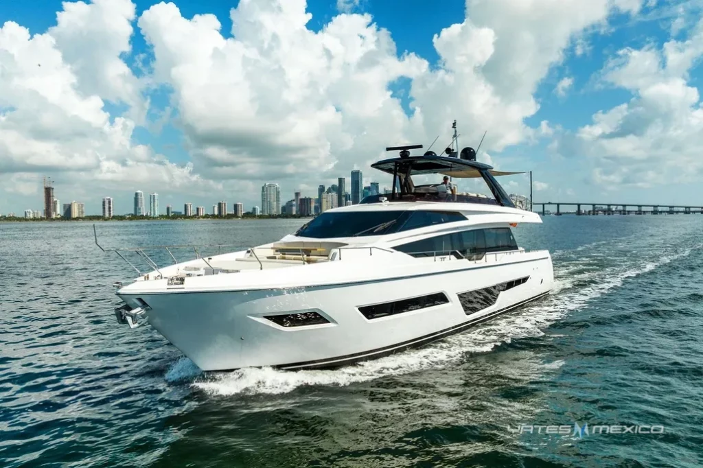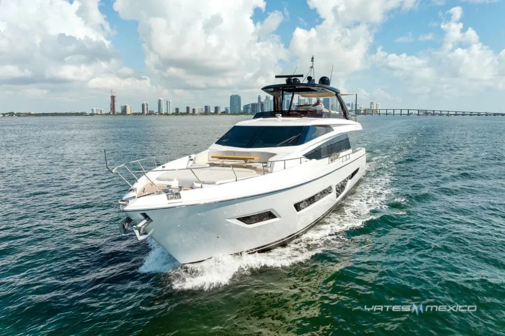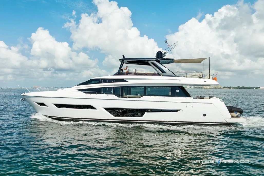 2023 Ferretti 780 en excelente estado. Cuenta con 4 cabinas y 4 baños, amplios espacios interiores, flybridge y área de descanso. Disponible en Miami, Florida.
