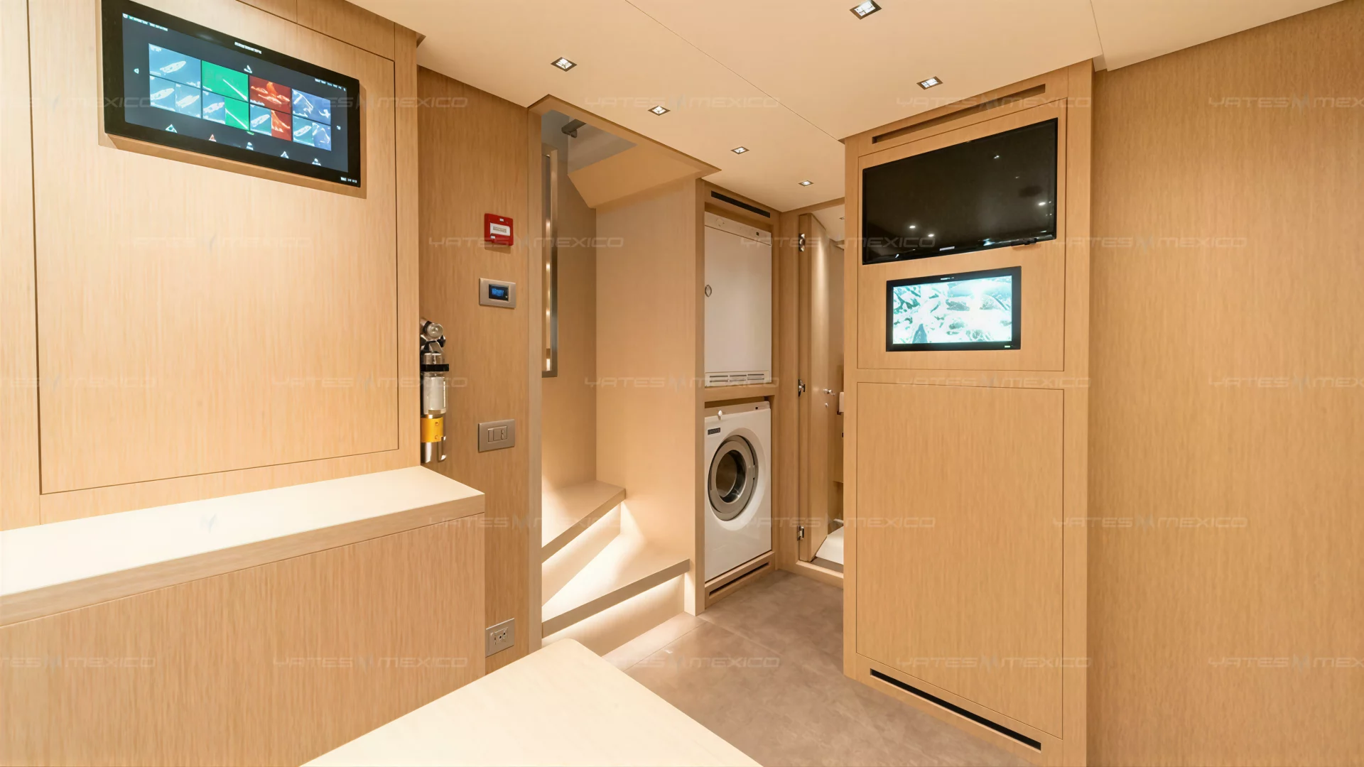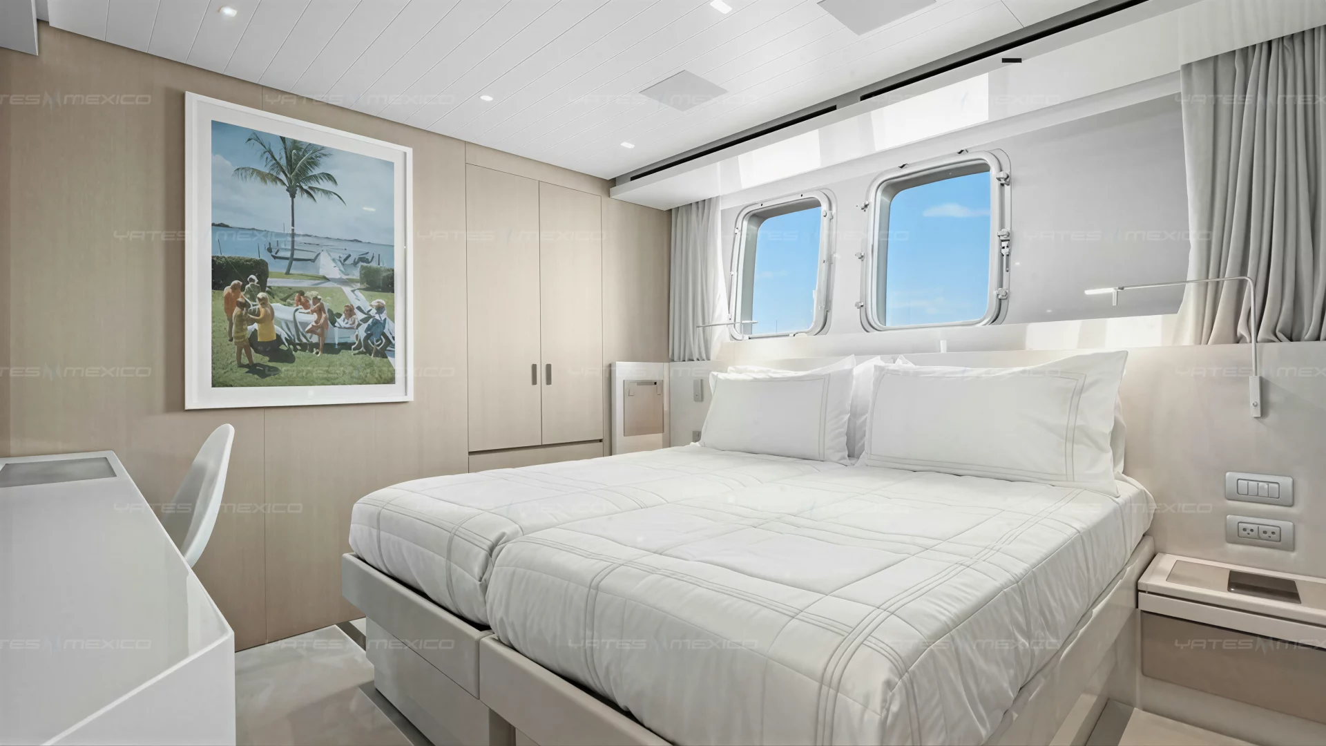 Equipado con motores MTU de alto desempeño y estabilizadores Zero Speed, este yate garantiza navegación suave y eficiente tanto en movimiento como en fondeo.